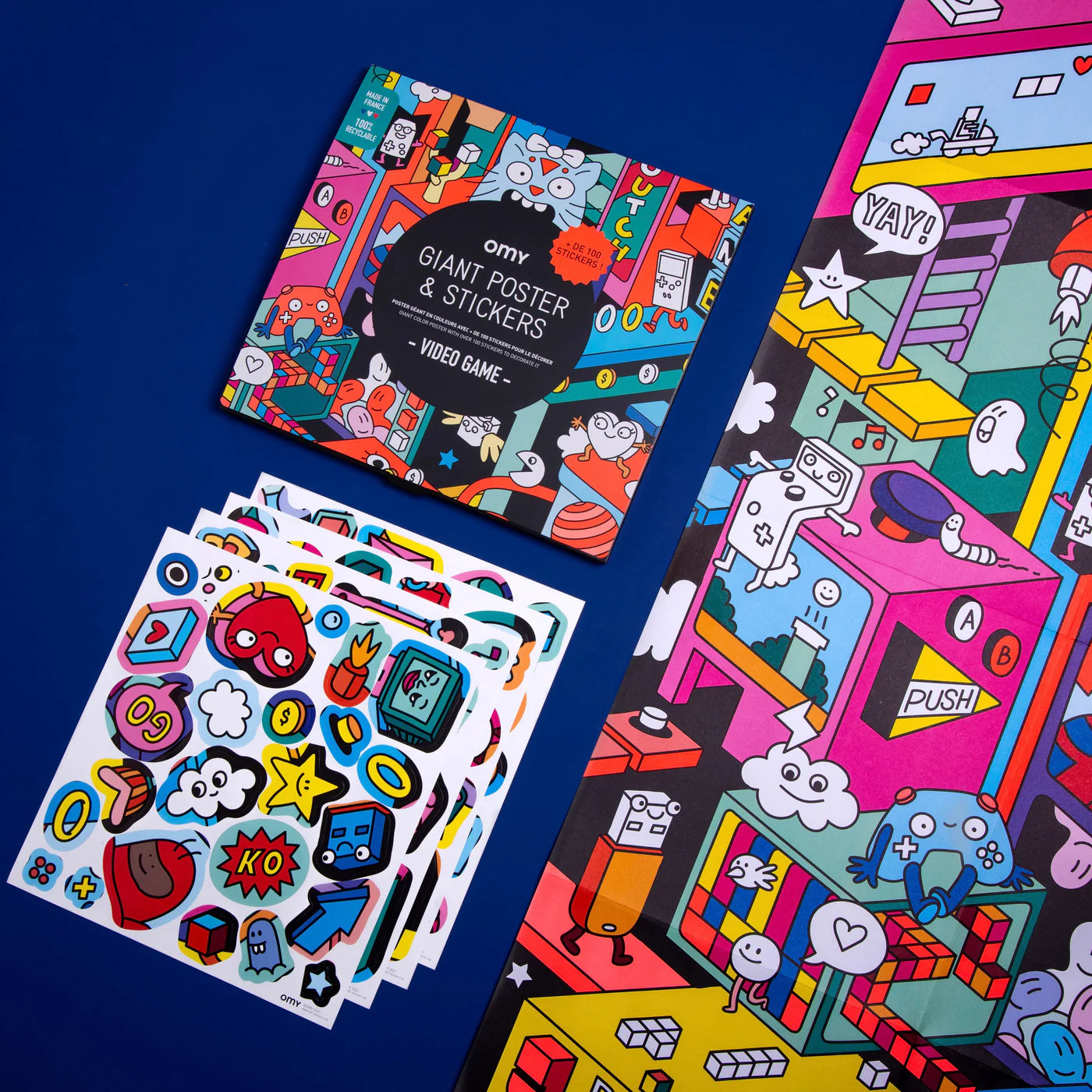 De giant poster & stickers van OMY is een mega-kleurplaat die tot leven komt met de bijgeleverde stickers. Kinderen kunnen kleuren, plakken en hun eigen wereld creëren op groot formaat. Ideaal voor uren creatief plezier, alleen of samen. Een vrolijke mix van kleuren en fantasie op posterformaat!