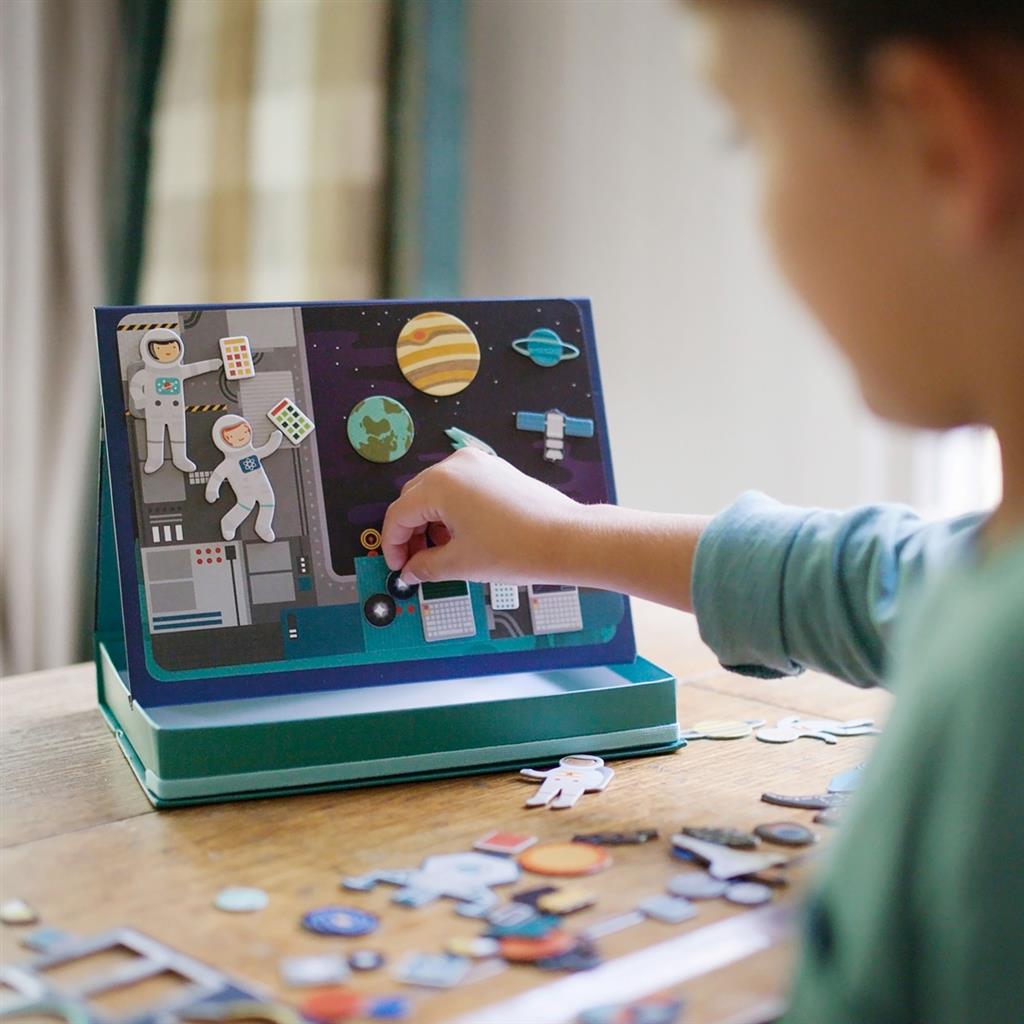 De magnetische speeldozen van Petit Collage zijn perfect voor fantasierijk spel, thuis of onderweg. Elke stevige doos bevat een kleurrijke achtergrond en tal van magneten om steeds opnieuw nieuwe scènes en verhalen te creëren. Ze stimuleren creativiteit, fijne motoriek en zelfstandig spelen. Compact, duurzaam en ideaal voor kleine handjes met grote verbeelding!
