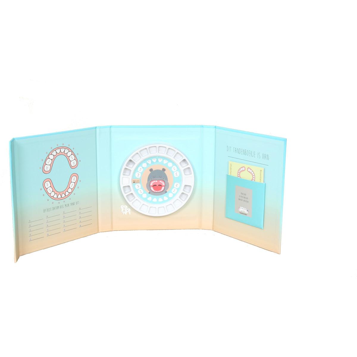Het boekje bestaat uit een handige houder met draaivakjes waar elke tand zijn eigen plaats heeft. Er is plaats voor een foto en bij elke tand kun je bijhouden wanneer deze gewisseld is. Daarnaast bevat het boekje een vijftal speciale kaartjes die het extra interessant maken voor uw kind. Deze kaartjes beschrijven educatieve weetjes over de tanden vergezeld van leuke tekeningen of bieden ruimte voor eigen (aan)tekeningen van uw kind. De kaartjes hebben een speciaal plekje in het album en nodigen uit om te exploreren en leren.
